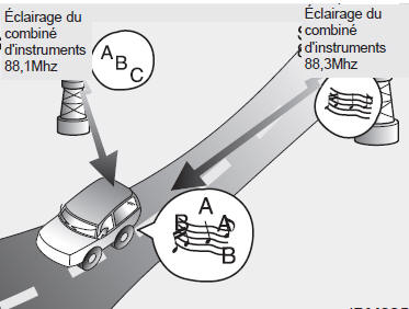 Les signaux radio AM et FM sont diffusés à partir des émetteurs de banlieue de la ville où vous habitez. Ces signaux sont interceptés par l'antenne radio de votre véhicule. Le signal ensuite reçu par l'unité radio est envoyé aux hautparleurs.
