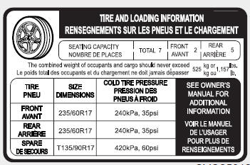 Kia Carnival: Entretien des pneusPour un entretien approprié, un fonctionnement sécuritaire et une économie maximale de carburant, les pneus doivent toujours être maintenus aux pressions de gonflage recommandées et respecter les limites de charge et de répartition de poids indiqués pour votre véhicule.