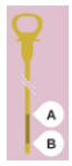 A = maxi, ne jamais dépasser ce niveau, car un surplus d'huile peut provoquer des dommages moteur.